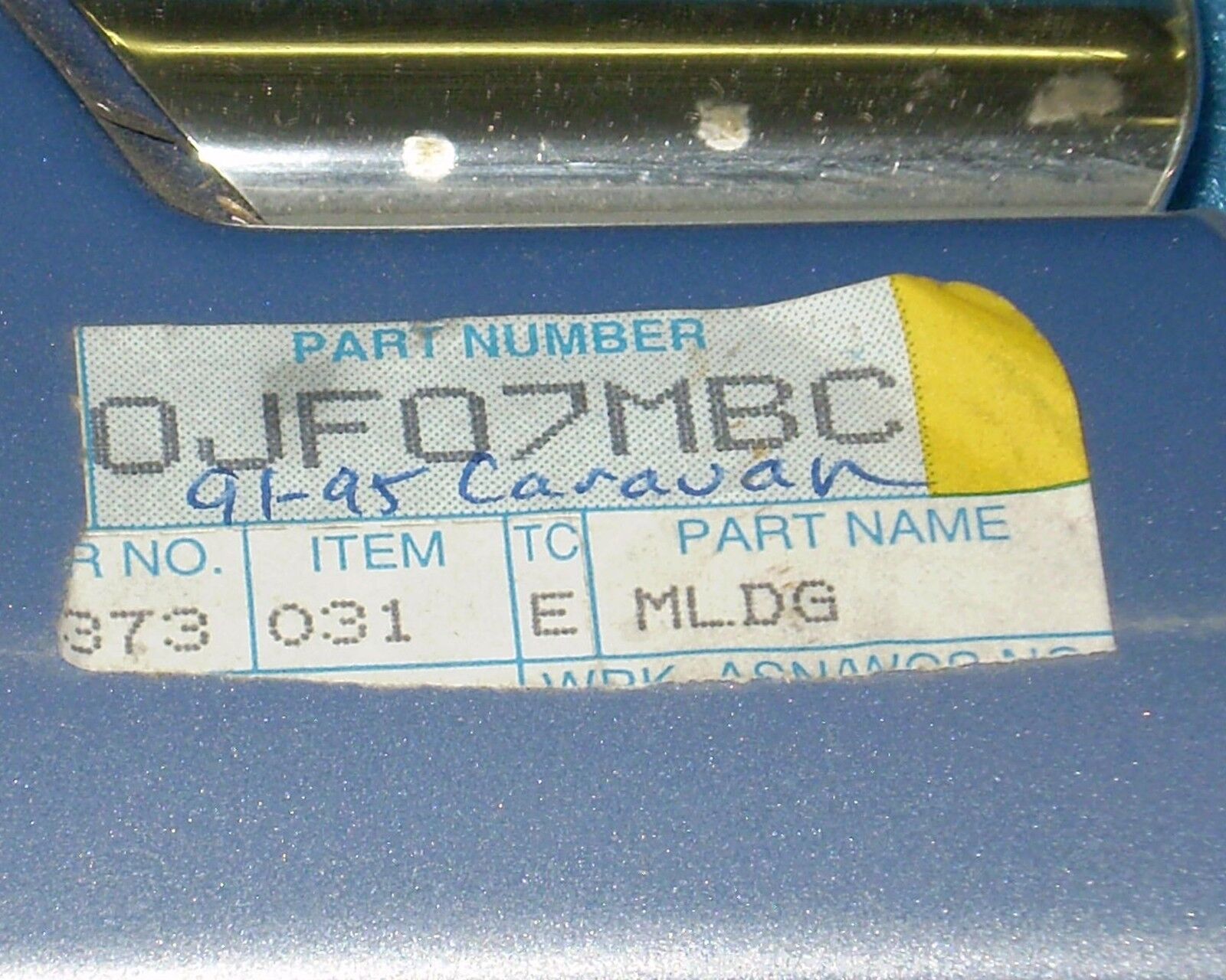 Original Dodge/Plymouth/Chrysler/Mopar Part. O.E.M. # 0JF07MBC. This is a new, never installed, drivers side Dodge/Plymouth/Mopar O.E.M. molding. Not perfect, but new, minor storage defects, please see photos. This is the perfect economical replacement for the damaged or missing part on yours or your customers vehicle.